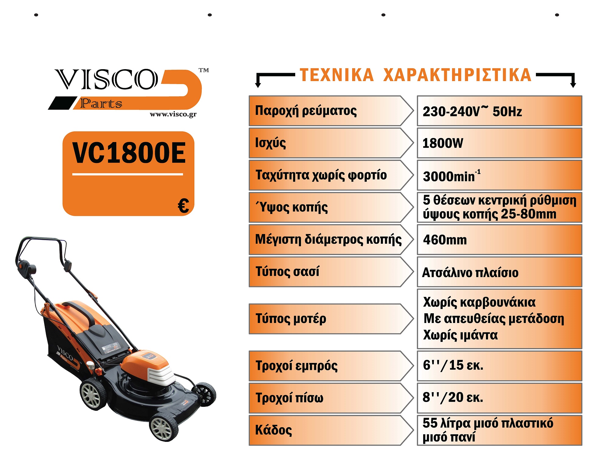 Προσθήκη στο καλάθιΓΡΗΓΟΡΗ ΜΑΤΙΑΗΛΕΚΤΡΙΚΕΣ, ΚΗΠΟΣ ΑΓΡΟΤΙΚΑ, ΜΗΧΑΝΕΣ ΓΚΑΖΟΝVC1800E Χλοοκοπτική Μηχανή Γκαζόν VISCO Ρεύματος 1800W